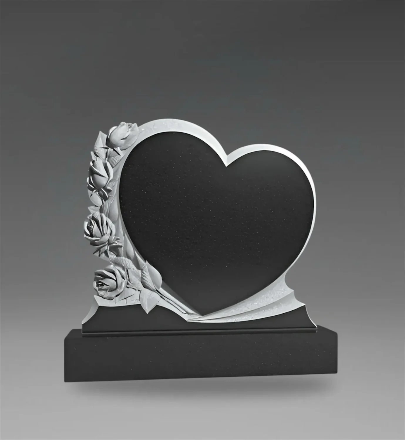 Artystyczna tablica nagrobkowa granitowa w kształcie serca z ozdobnymi różami A185 – symbol miłości i wiecznej pamięci