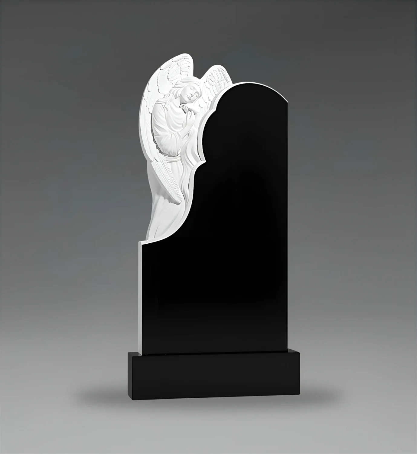 Artystyczna tablica nagrobna z aniołem z czarnego granitu A187