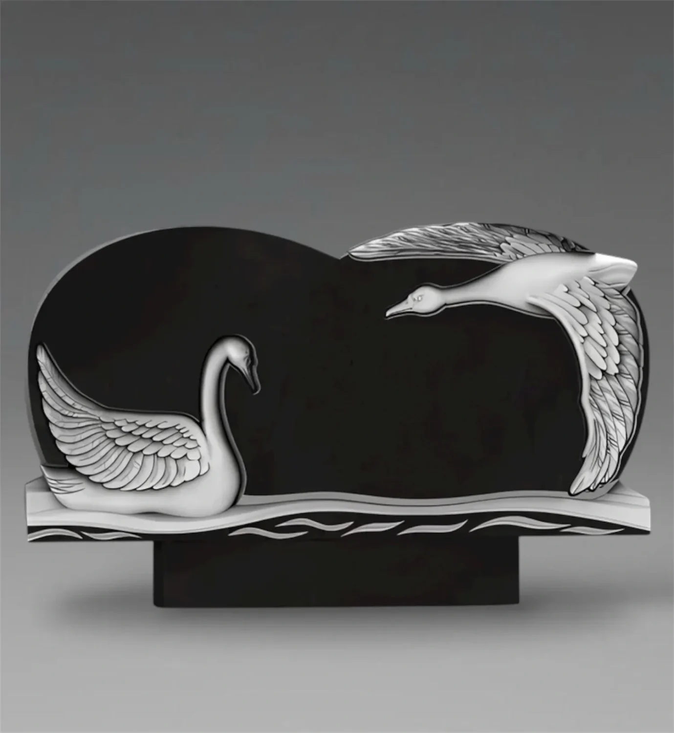 Ekskluzywna tablica nagrobkowa granitowa z rzeźbą dwóch łabędzi na wodzie A165 – symbol miłości, wierności i wiecznej pamięci