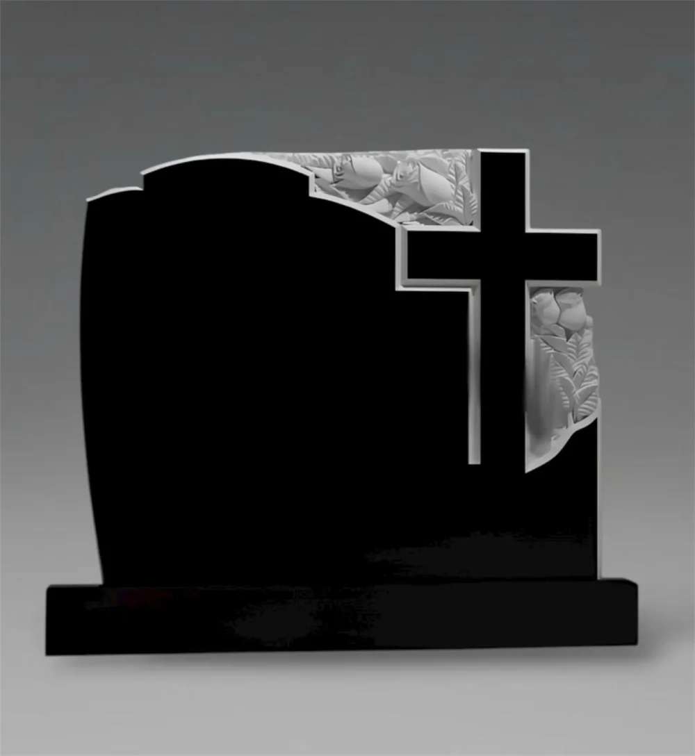 Artystyczna tablica nagrobkowa granitowa z wyciętym krzyżem i rzeźbionymi różami A128 – elegancja i duchowe piękno