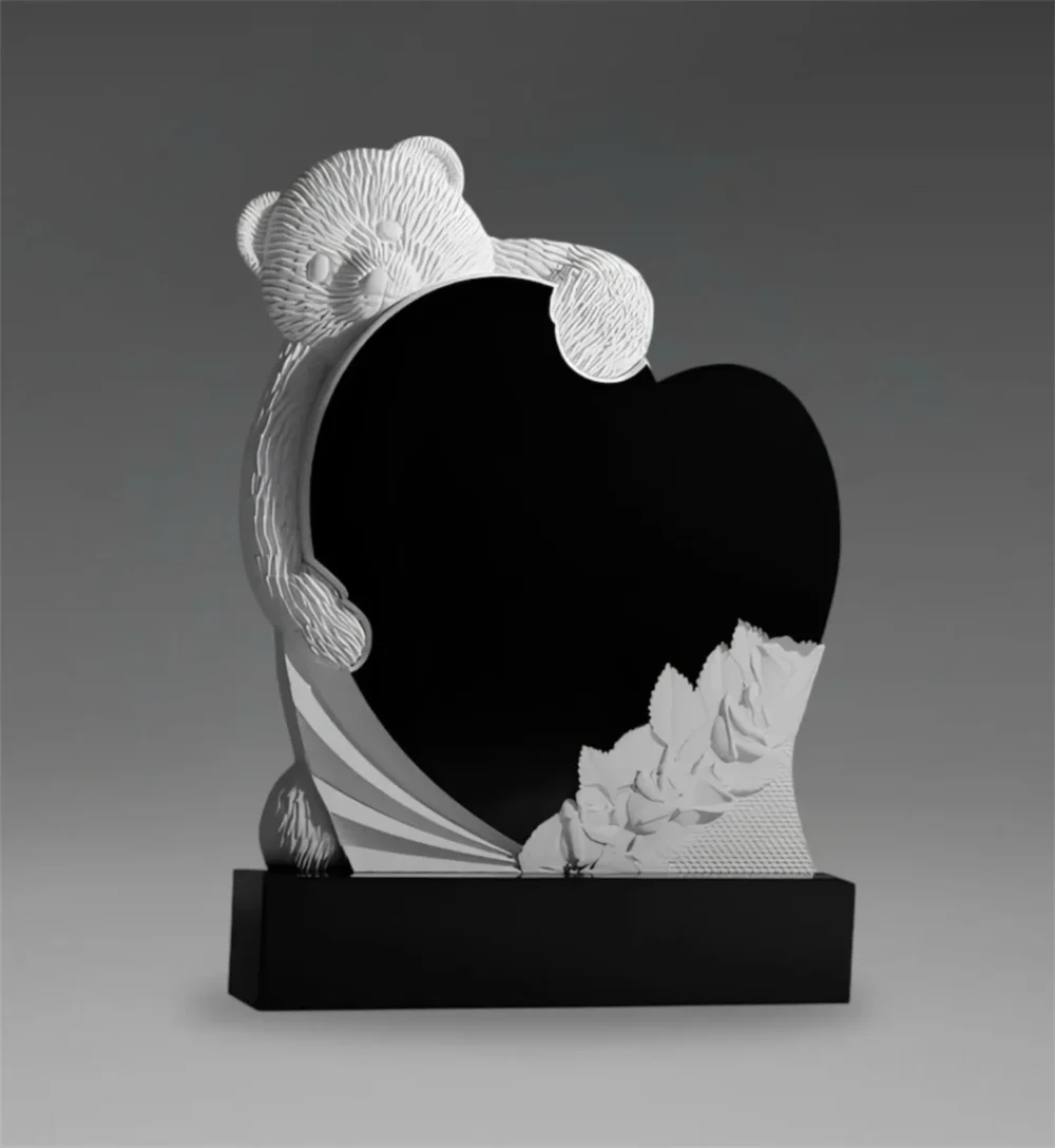 Tablica nagrobna granitowa dla dziecka w kształcie serca, ozdobiona rzeźbą misia A17