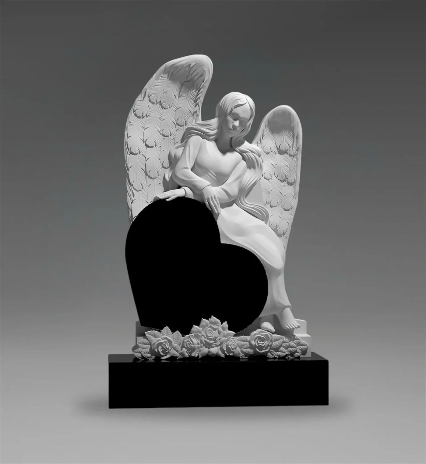 - Artystyczne wykonanie – Każdy detal anioła, serca i róż został precyzyjnie wyrzeźbiony, co nadaje pomnikowi wyjątkowy charakter i estetykę, wyróżniającą go na tle innych.