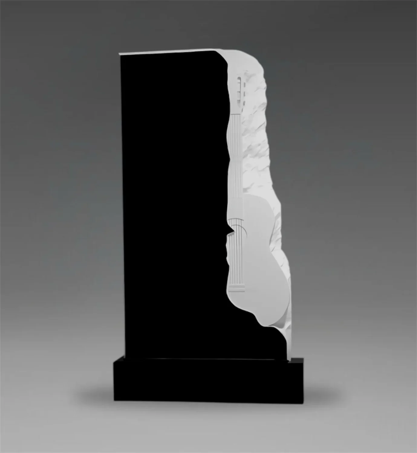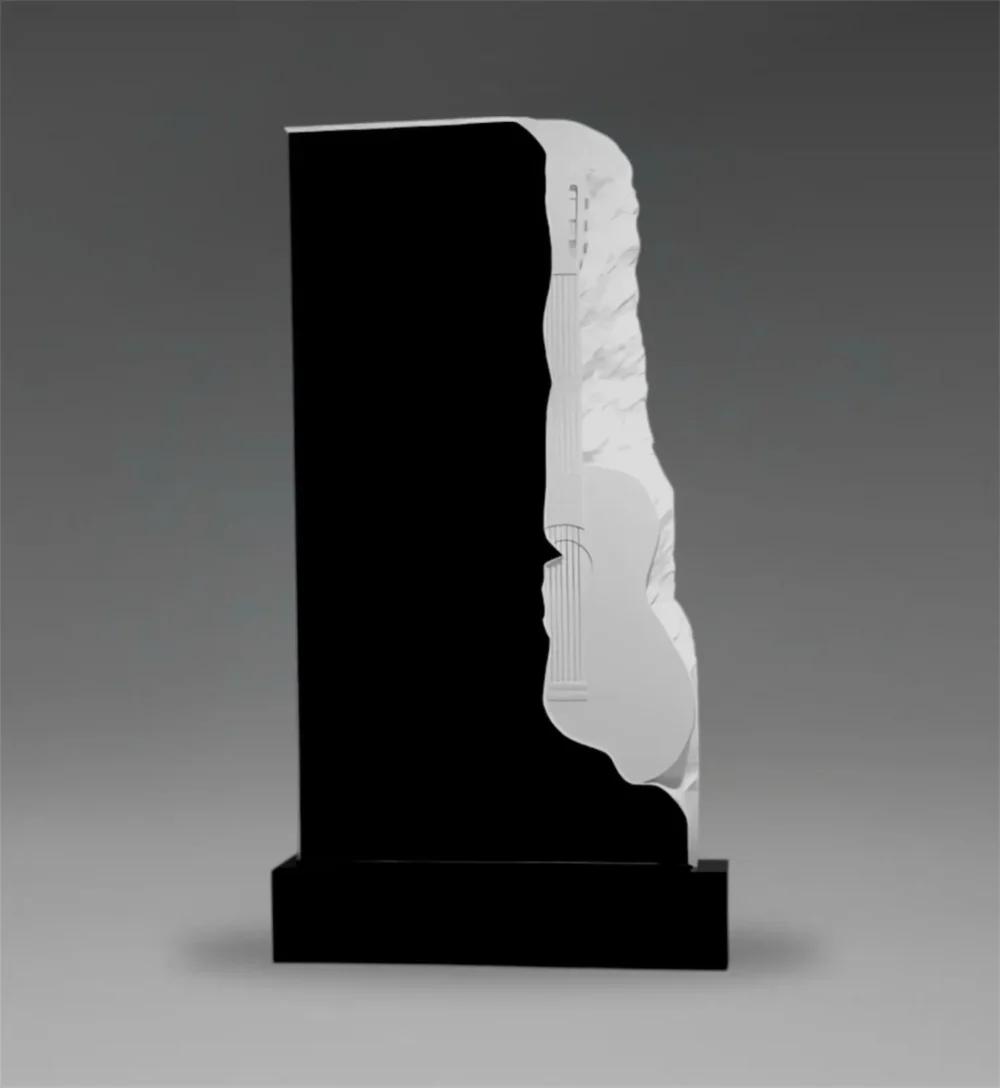 Tablica nagrobna z artystycznie wyrzeźbioną gitarą na tle A54 – elegancja, trwałość i głęboka symbolika