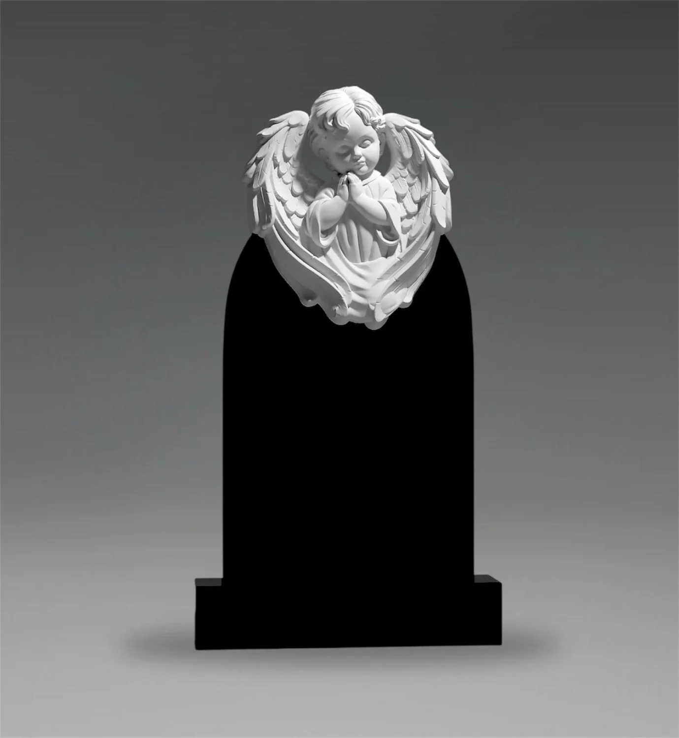 Tablica nagrobna z małym aniołkiem z czarnego granitu A191