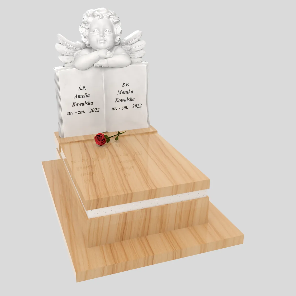 Nagrobek dla dziecka z rzeźbą książki i anioła D 79 – ciepła forma pamięci