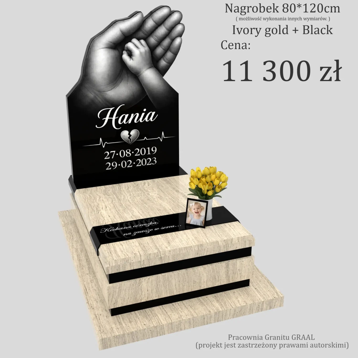 Nagrobek dziecięcy D 81 – nagrobek dla dziecka z grawerem dłoni (projekt premium w jasnym granicie)