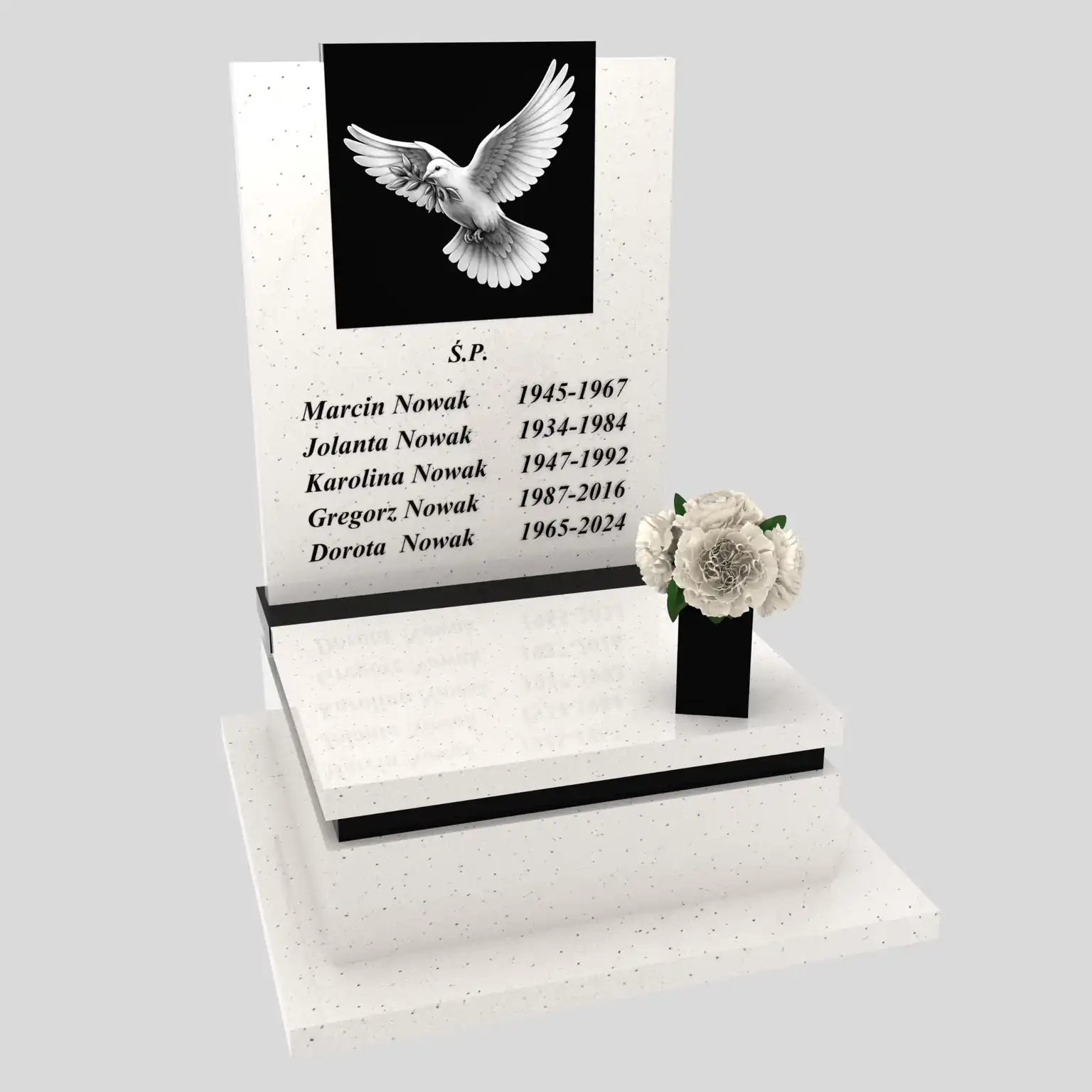 Nagrobki urnowe U 118 – nowoczesny pomnik urnowy z grawerem gołębia (granit Super White)