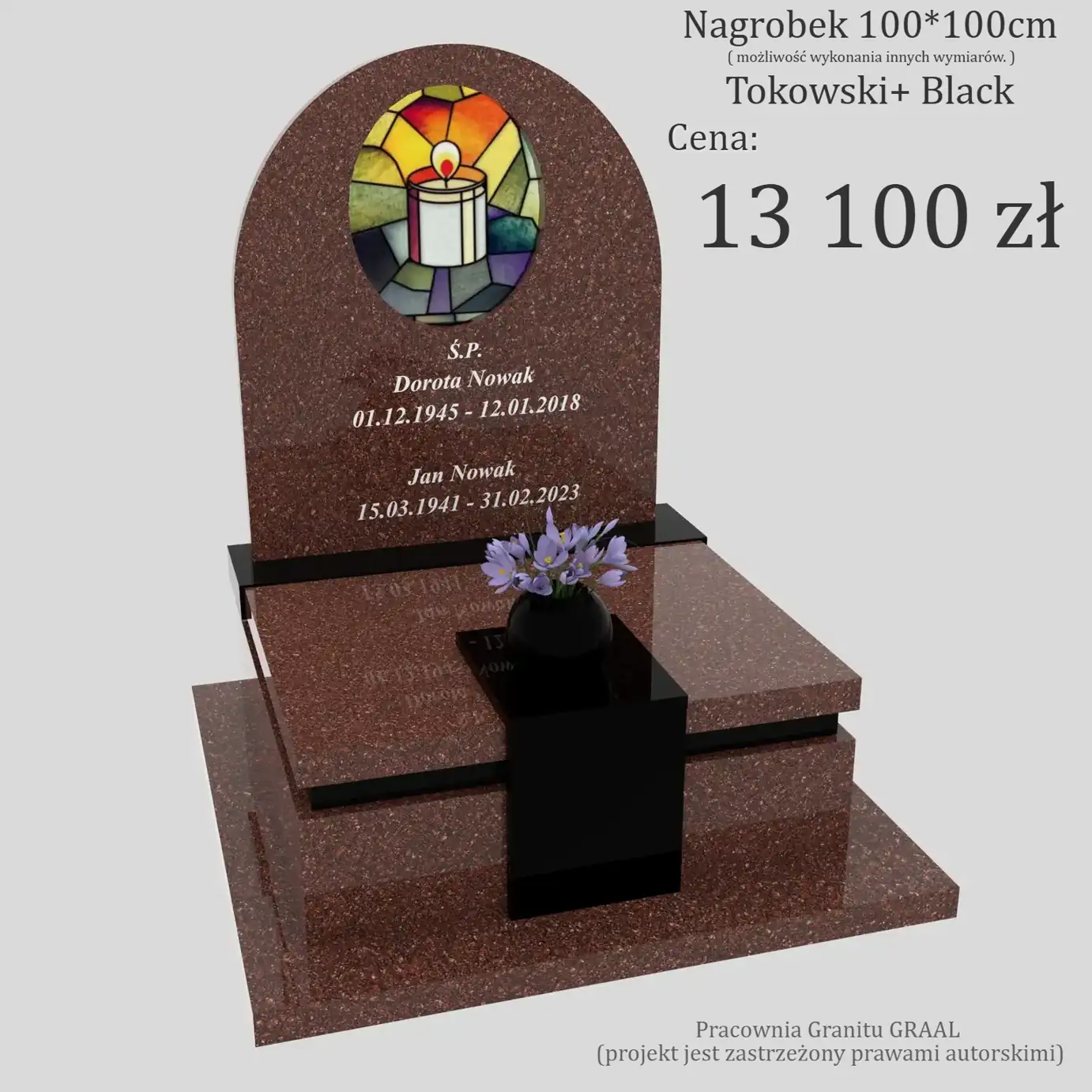 Pomniki należące do kategorii nagrobki z witrażem łączą trwałość kamienia z elementem artystycznym, który przyciąga uwagę i nadaje pomnikowi indywidualny charakter. Witraż w granicie sprawia, że pomnik wygląda elegancko zarówno w świetle dziennym, jak i podczas odwiedzin na cmentarzu.
