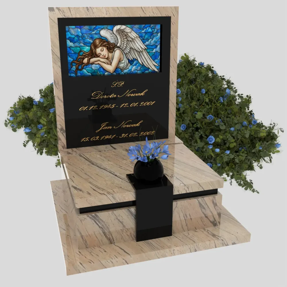 Nagrobek urnowy z witrażem anioła – forma elegancka U 125