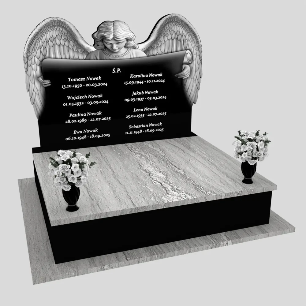 Specjalizujemy się w artystycznej rzeźbie z granitu i tworzeniu ekskluzywnych nagrobków, w tym skomplikowanych rzeźb aniołów, Jezusa Chrystusa, Matki Bożej i innych symboli.