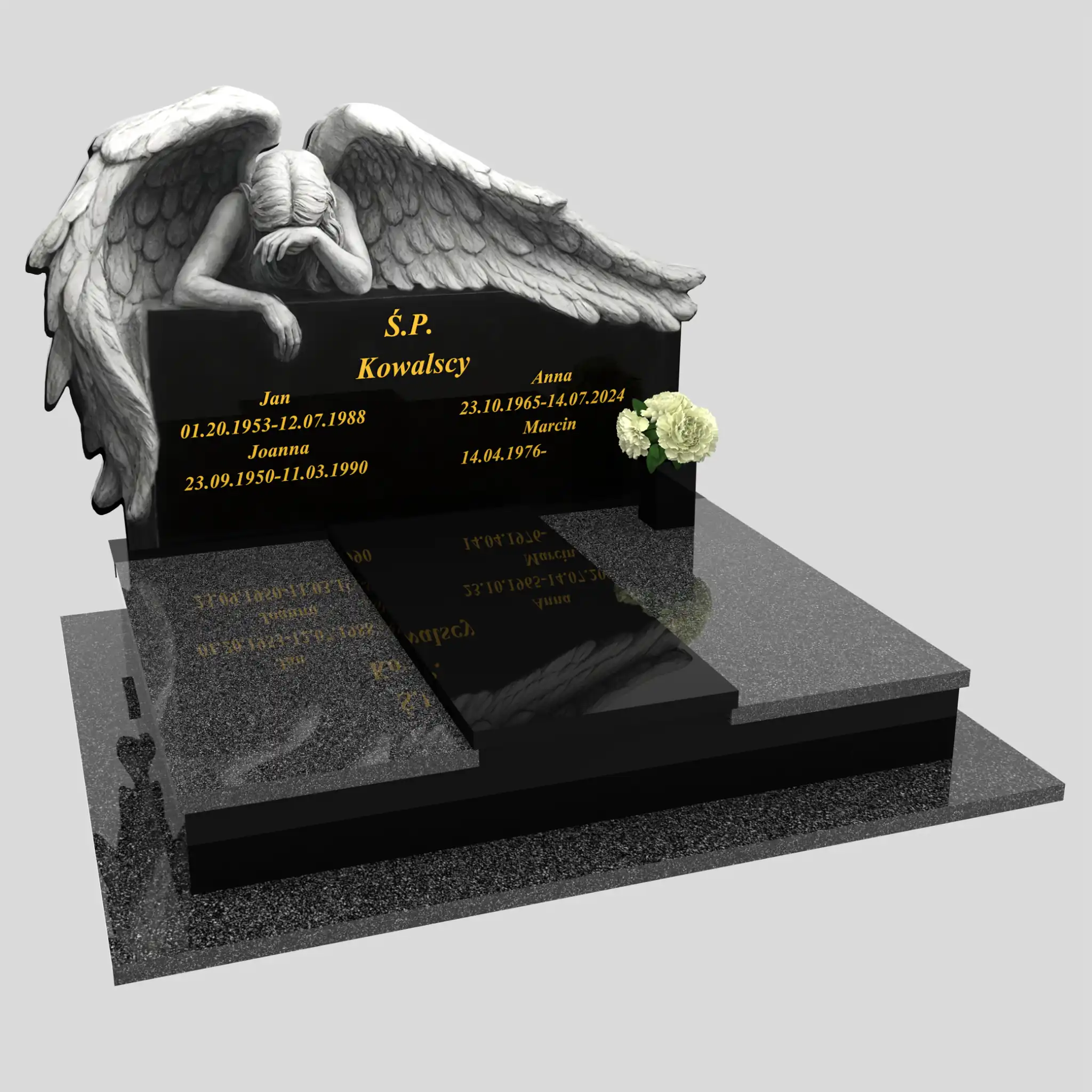 Nagrobek podwójny CK 77 – granit Impala, anioł grawerowany (imitacja rzeźby)