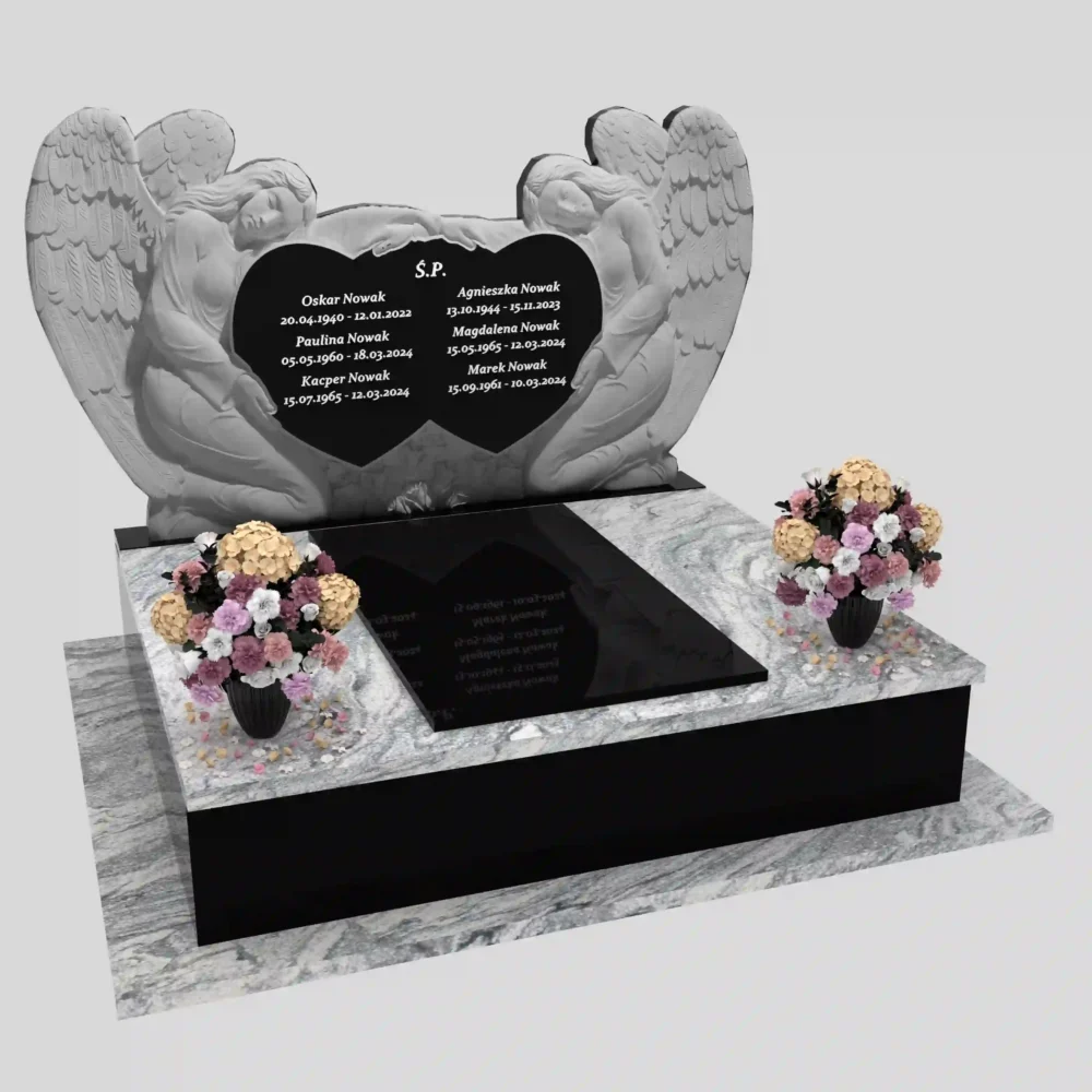 Nagrobek podwójny z rzeźbą dwóch aniołów, wykonany z granitu CK 101