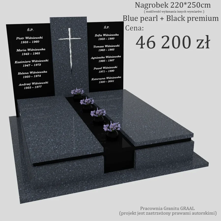 To idealny wybór dla rodzin, które chcą postawić nagrobek podwójny godny, trwały i elegancki, a jednocześnie zależy im na nowoczesnym wyglądzie oraz wyrazistej symbolice chrześcijańskiej.