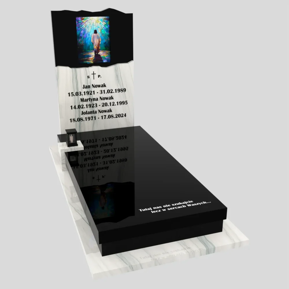 Nagrobek pojedynczy z witrażem Jezusa – forma nowoczesna K 123