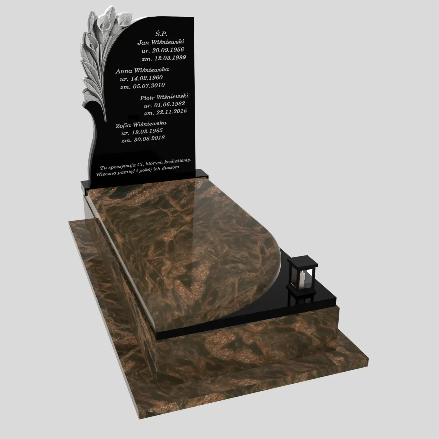 Projekty 3D Darmowo tworzymy kilka wariantów projektów 3D pomnika dla każdego klienta. Konkurencja albo nie wykonuje projektów 3D, albo pobiera dodatkową opłatę (minimalnie 100 dolarów).