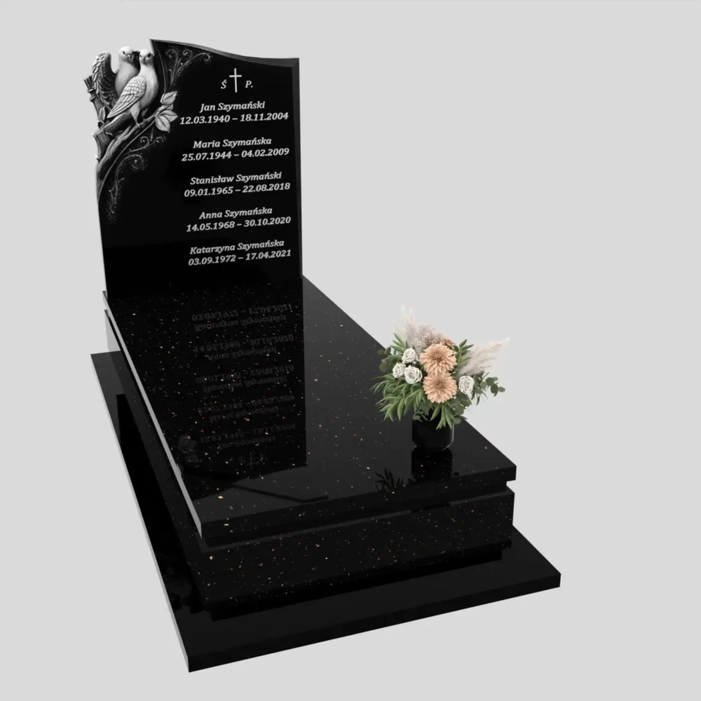 Nagrobek pojedynczy z grawerem dwóch gołębi z granitu Star Galaxy CK 176 – nowoczesne nagrobki pojedyncze w głębokiej czerni