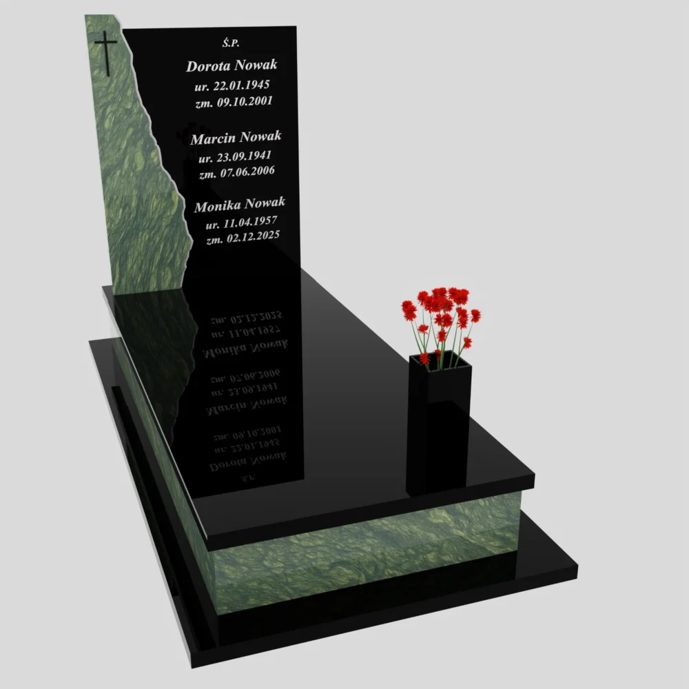 Projekty 3D Darmowo tworzymy kilka wariantów projektów 3D pomnika dla każdego klienta. Konkurencja albo nie wykonuje projektów 3D, albo pobiera dodatkową opłatę (minimalnie 100 dolarów).