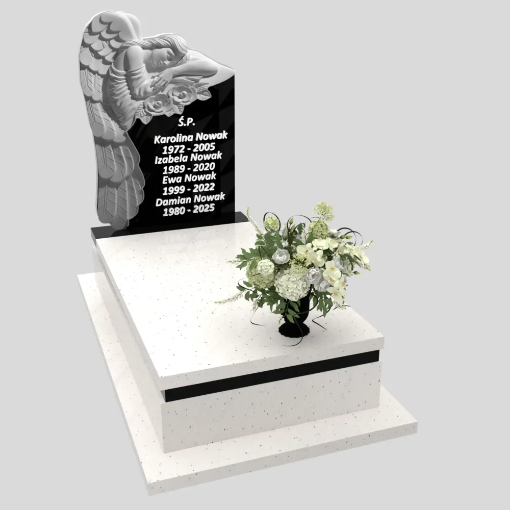 Nagrobek pojedynczy z rzeźbą anioła symbolizującego opiekę i spokój, wykonany z granitu CK 156