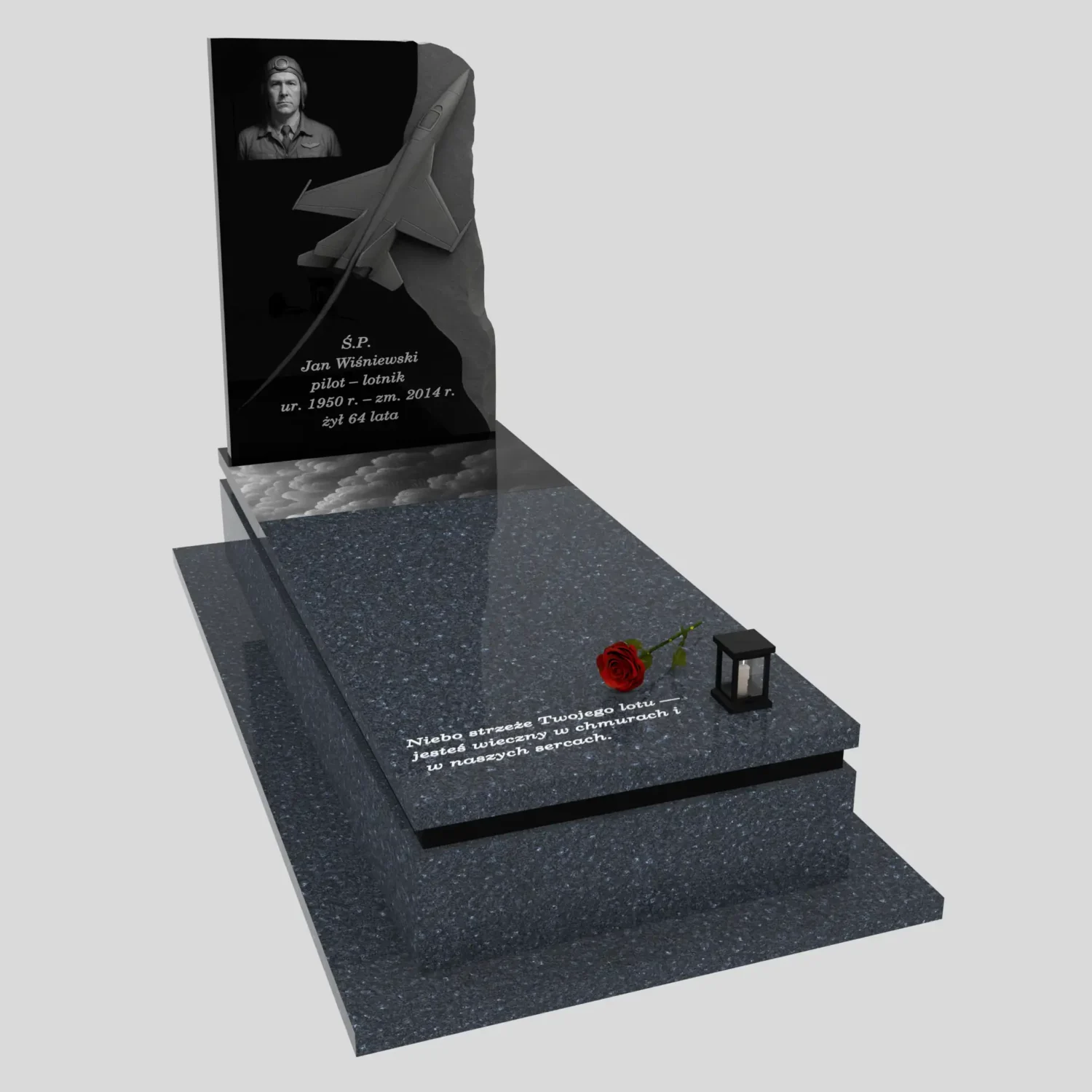 Nagrobek pojedynczy z rzeźbą dla pilota z granitu CK 141