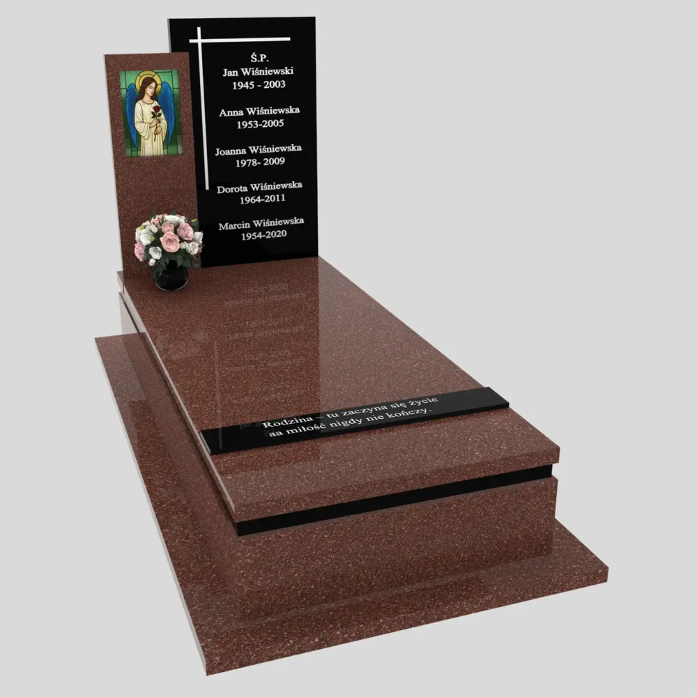 Nagrobek pojedynczy z witrażem anioła z granitu CK 146